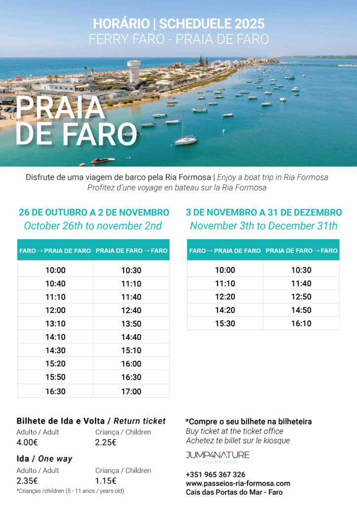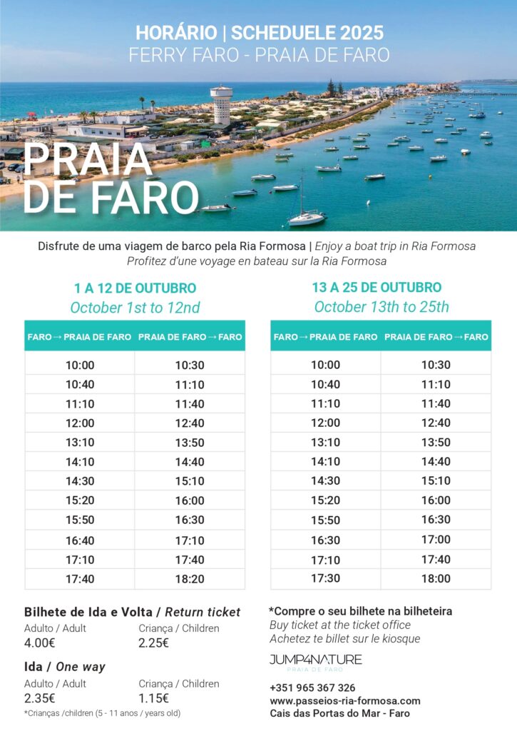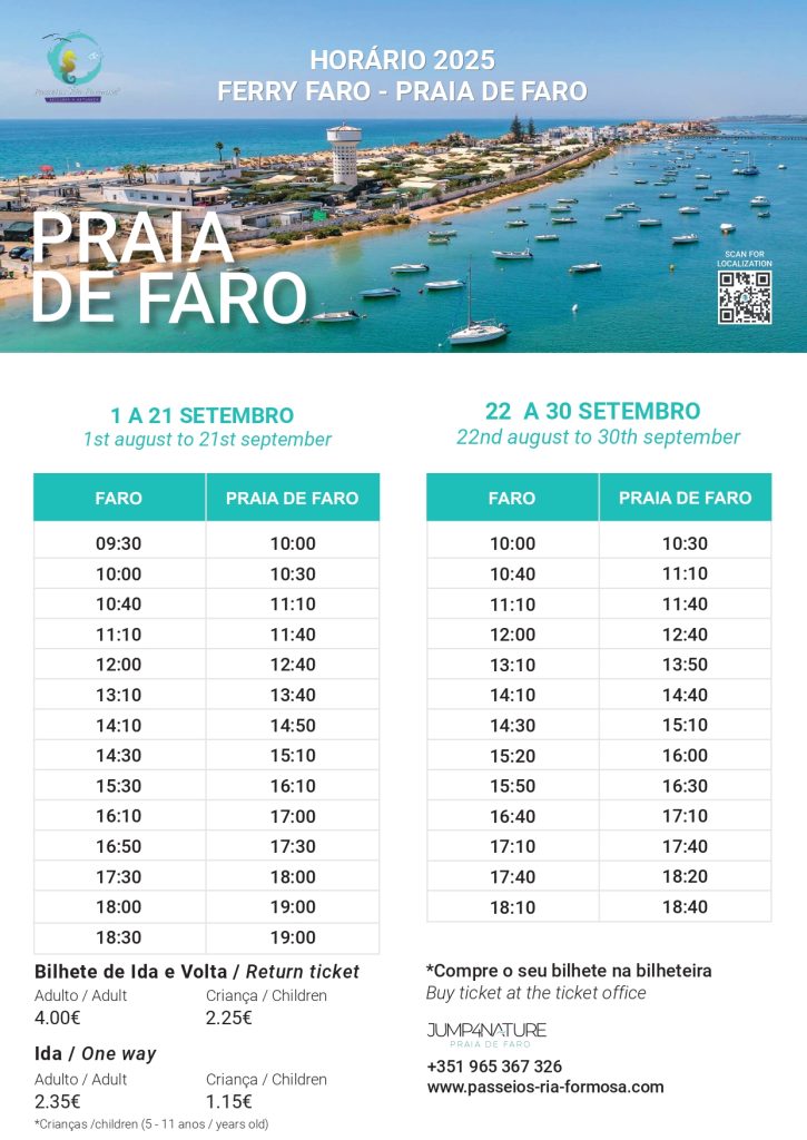 Visit Faro Beach by Ferry and enjoy the trip through the Ria Formosa. Praia de Faro has several options for accommodation, leisure activities and also numerous bars and restaurants.